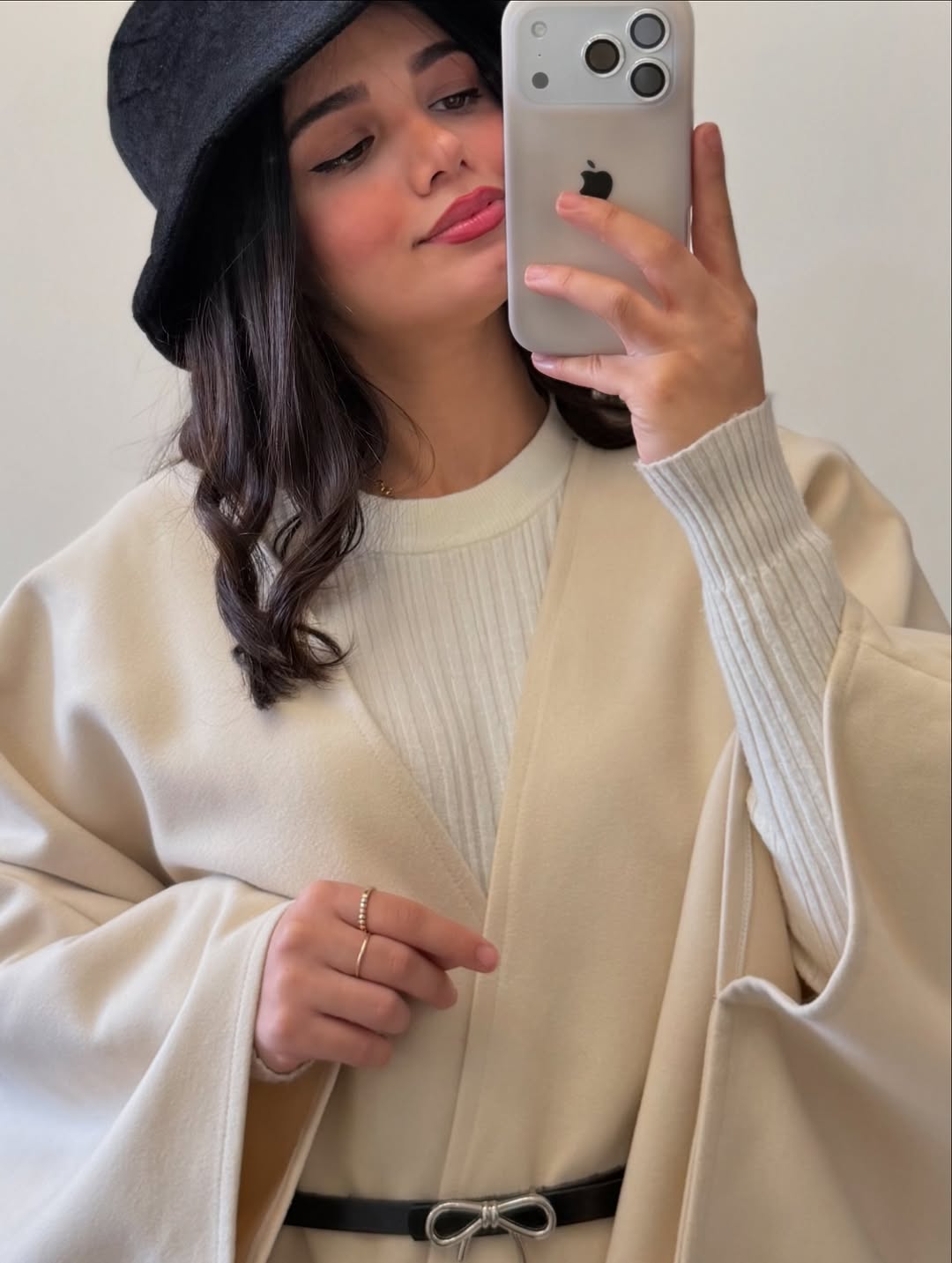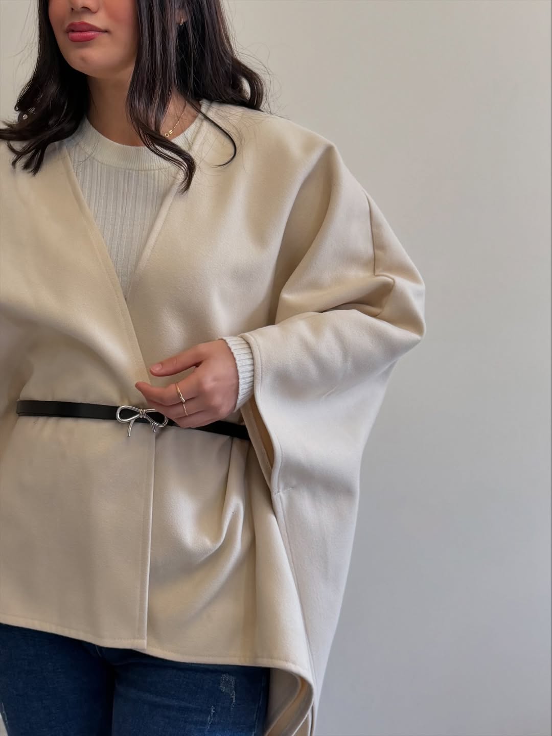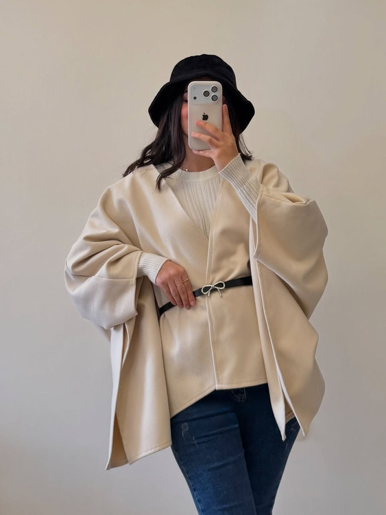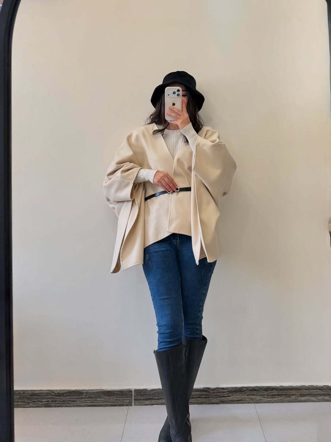پانچوی گرم، سبک و فوقالعاده شیک با سایز بندی ۵۵.۶۰.۶۵.۷۰.۷۵.۸۰ و دو عدد شیرازه برای استفاده از کمربند.